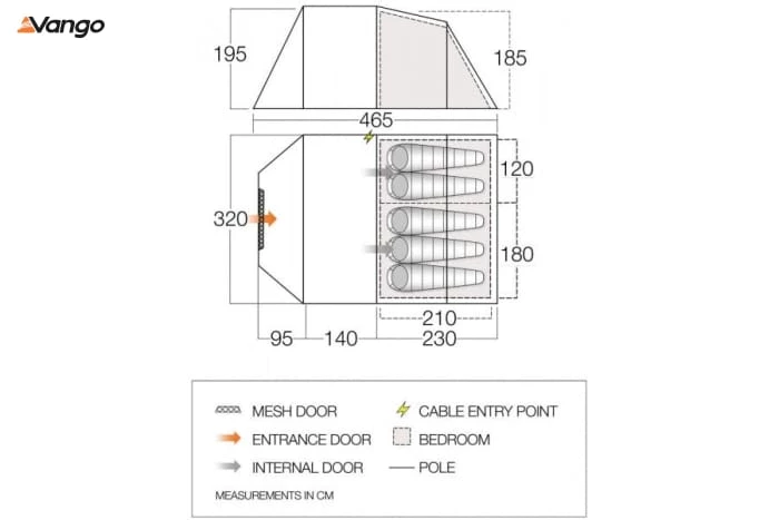 - Vango AirZone – High and low level ventilation panels combine to create a comfortable flow of air through the tent. Air circulation is essential for reducing condensation
