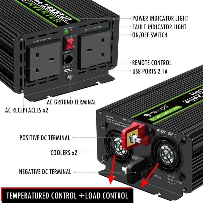 Specially designed and adapted to the specific needs of long-distance travel vehicles. Completely safe in operation and capable of absorbing strong currents and tolerate variations in charge when in use. Their quality of current is higher than household plugs. These converters are compatible with all types of batteries.Â