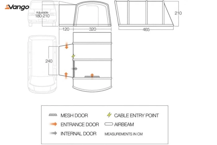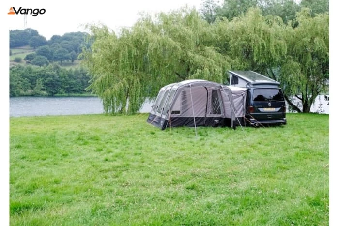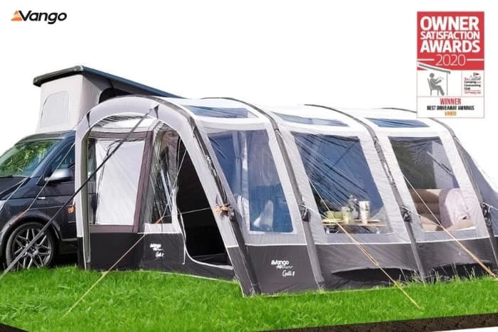 The Vango Galli drive away awning is ideal for anyone who wants a large and versatile space on their outdoor holiday. This awning boasts the option of space for two bedroom inner tents. Our inflatable AirBeam® technology means you can pitch this awning in a matter of minutes so you’ve got more time to enjoy your holiday. The pre-angled beams create ample height throughout and the Sentinel Pro Fabric is perfect for touring with your campervan. It’s also made even easier with multiple attachment options and the roll away tunnel allows you to drive away, leaving your awning free-standing.