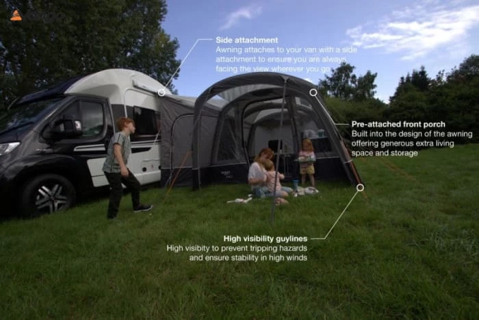 - AirZoneâ„¢ Ventilation – High and low level ventilation panels combine to create a comfortable flow of air throughout the awning, which is essential for reducing condensation