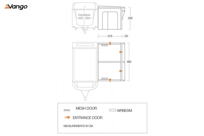 - Vango Draught Seal System – Our Patent Pending Draught Seal System creates a tight seal between the awning and your caravan, ensuring no draughts come into your awning. This eliminates the need for any poles, which may potentially have damaged your caravan.