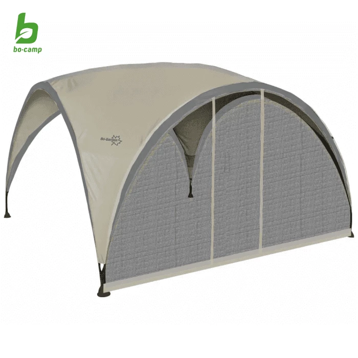 A loose and convenient insect netted side wall completed with a door, to attach to your Bo Camp party shelter gazebo. This side wall and door entrance is easy to fix on with velcro each side of the party shelter, quick and simple application that leaves you with a handy mosquito protected wall in the summer. The breathable mesh is ideal for some extra protection from bugs during warmer days in the garden, or at the camp site. With various attachable doors and walls, you are able to fully personalise your Bo Camp party shelter for all occasions in all weathers.Â