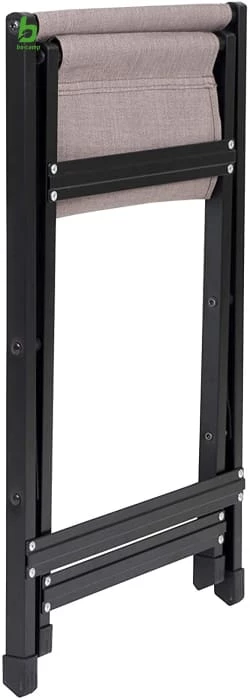- A sturdy and comfortable black frame folding stool