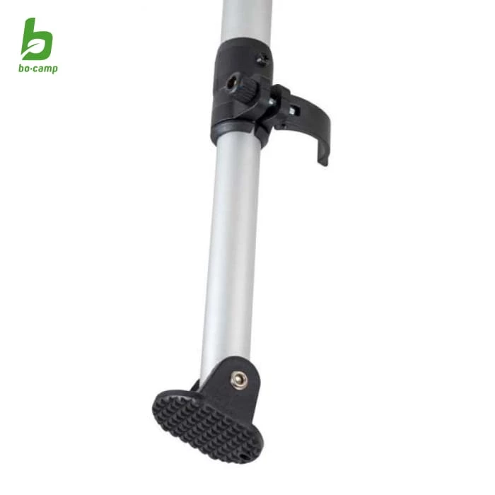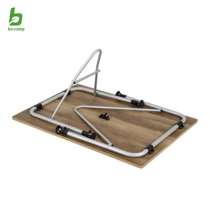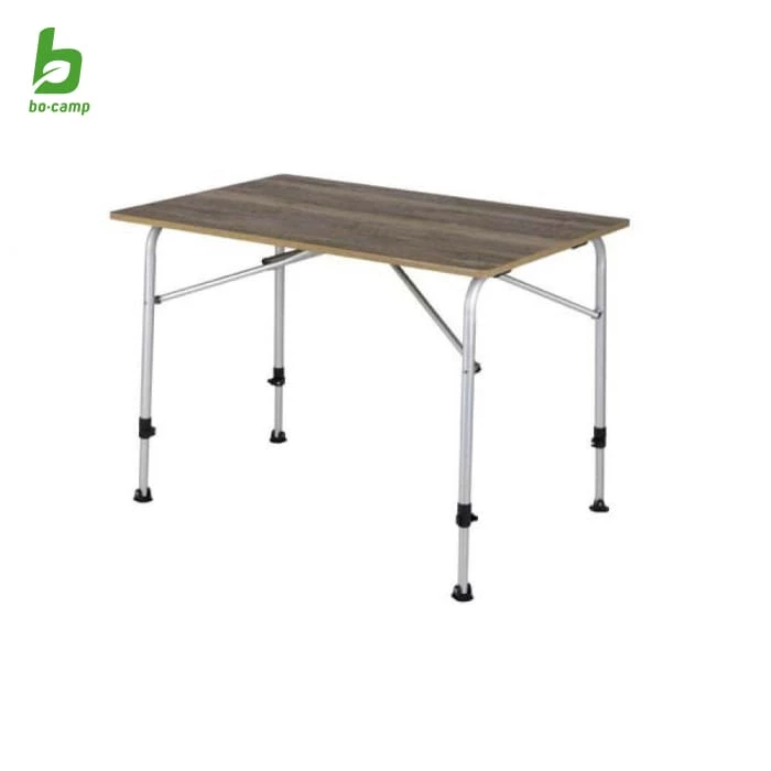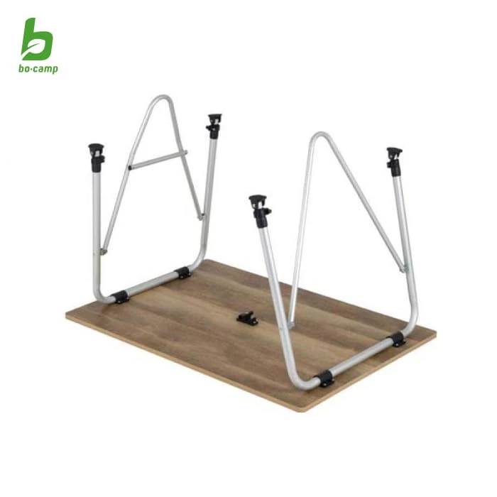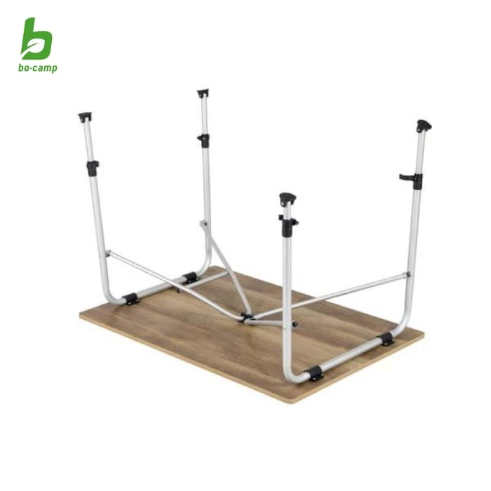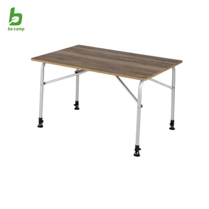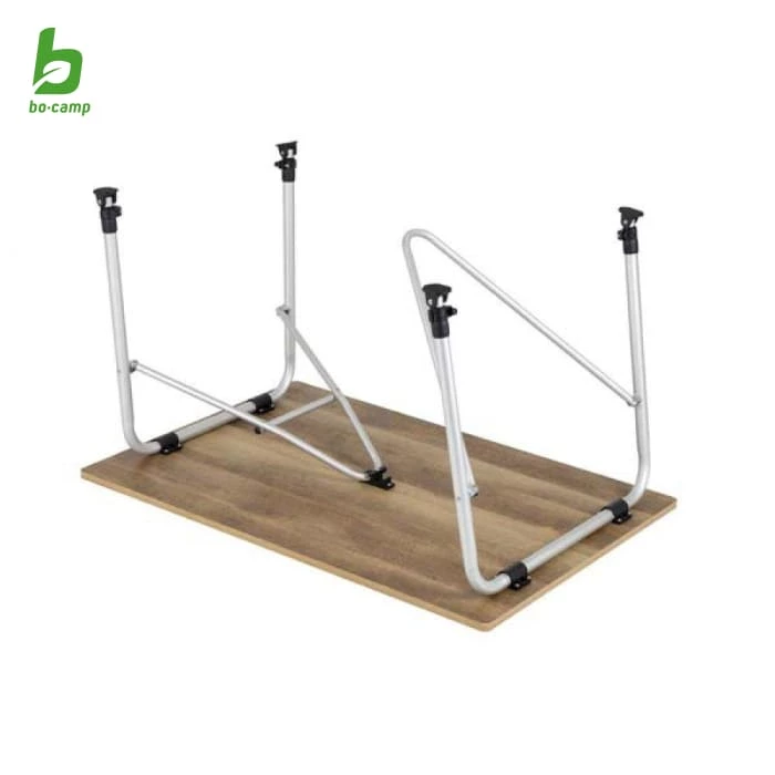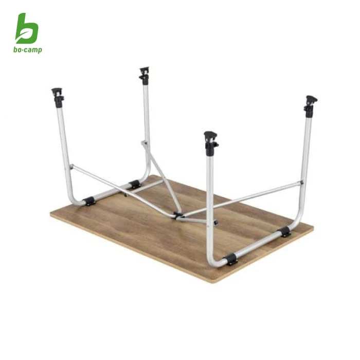 A lightweight but very stable camping table. The table has a glass fibre top with a plastic heat-resistant and waterproof edge. The camping table has an aluminium frame and feet with stabilisers to ensure that it stands firmly on all surfaces. The legs are infinitely height adjustable.