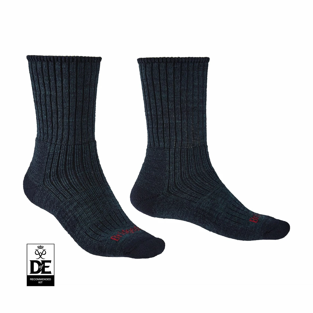 A boot-length sock for day hikers and trekkers who walk all year-round, the Hike Midweight Comfort features all-day protection with next-to-skin comfort. Merino Comfort Fusion Technology creates a soft, fast-drying, durable sock with a close supportive fit around your foot. The super stretch ribbed cuff provides a looser unrestrictive fit around your calf allowing it to be worn up or down. The engineered zonal padding system provides extra support and comfort throughout the foot bed for long comfortable days in the hills. The Flat Toe Seam minimises bulk that could cause irritation in the toe box and the sock is kept securely in place with an Elasticated Arch and 3D-shaped heel cup. Built on a structure of Lycra® and set by our Thermo Fit process ensures the sock returns to its original shape and size after every wash.