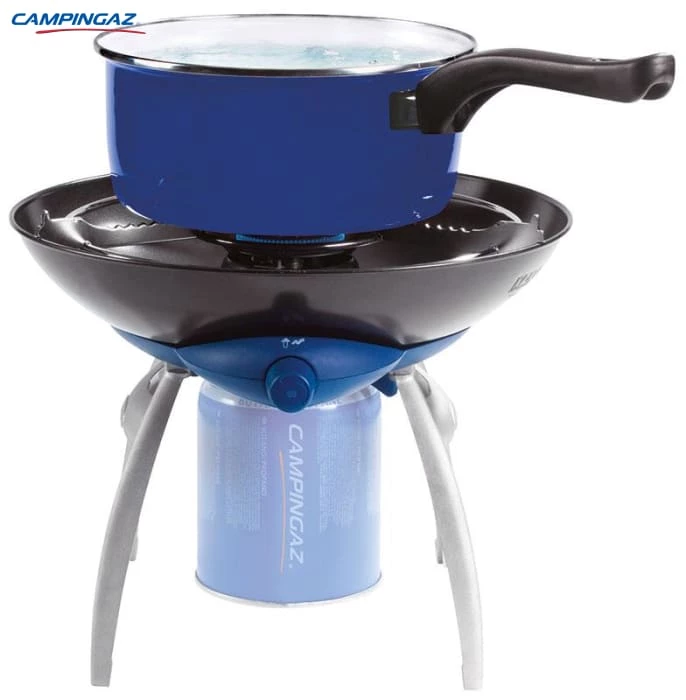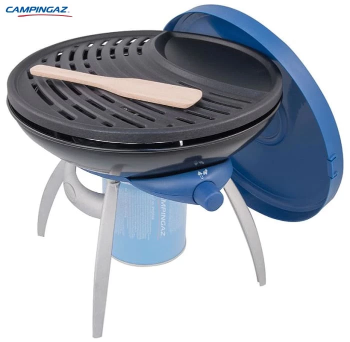 Cooking on the campsite has never offered so many culinary options.. This portable stove offers a range of cooking facilities: grill, griddle or flame stove. It is easy to transport and store with detachable legs and a lockable lid. A combined gas control and Piezo ignition ensure safe match-free lighting and the water filled base makes disposal of grease and cleaning up a simple task.