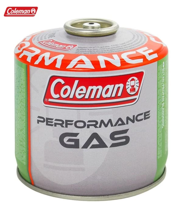 A propane/butane mix with a standard resealable screw thread. This resealable Coleman C300 Performance gas cartridge provides a 240g butane/ propane gas mixture (70/30) – providing a steady and consistent burn. It is compatible with all Coleman resealable appliances and comes in a threaded self-sealing cartridge. Features a safety valve.