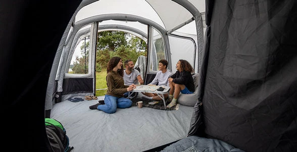 Inside the spacious living area large windows feature zipped window shades ensuring flexible levels of privacy. High and low ventilation is provided at the sides and rear of the tent to aid temperature control and reduce condensation.