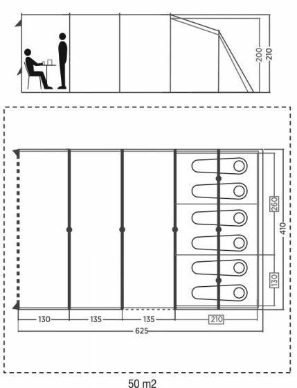 Multiple entrances offer easier entry and exit in inclement conditions. The generous living area is bright and airy and provides plenty of space for dining together or storing camping equipment and bags, while the extra-large porch provides the perfect place to relax, keeping you protected from the sun and rain. The tent’s outer fabric is fire retardant and for extra security, the zipper stoppers on the tent doors ensure that zips are always within easy reach in the event of an emergency, even for children.