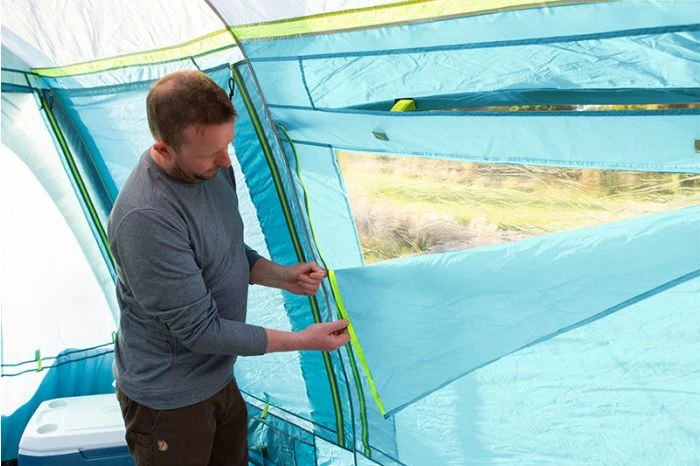 The revolutionary extra-large, BlackOut Bedrooms block out up to 99% of daylight for a longer sleep and also help to maintain a comfortable internal temperature, keeping the tent’s bedrooms up to 5 degrees cooler during the day, and up to 1 degree warmer during the night.