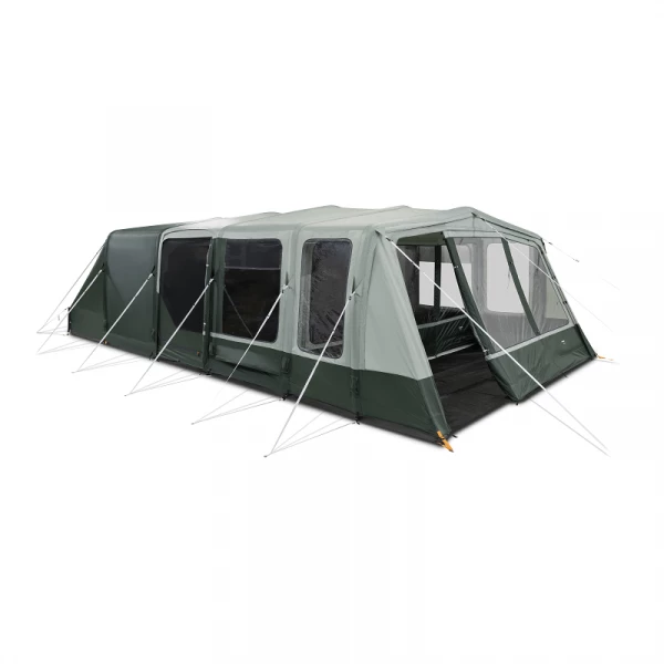 The tent has four zones: a rear storage area to de-clutter the main body of the tent, a very generous sleeping area (with a master bedroom) to accommodate any air bed or camp bed, a big living area to make sure you are never short of space (especially on those rainy days) and a ample front awning section giving you a great a wet/dry area before entering, which also can be used to create the perfect shelter cooking area. An additional annexe can be zipped onto the side of the tent to give another storage space or a toilet location so that you don’t have to go far in the middle of the night.