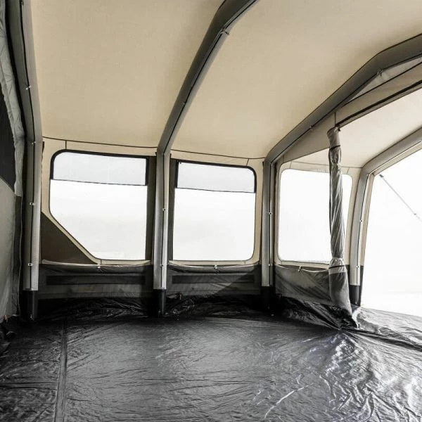 The other key theme for the Ascension is quality, Dometic have used their best Waterproof 150D Polyester fabric with double stitched seams to ensure the tent stands the test of time. With a 6,000mm Hydrostatic Head along with multiple ventilation panels (high and low) you can really get the balance between waterproof and airflow. Through-out the tent there is great interior height thanks to a very boxy shape and oversized beams. The tent can be pitched by one person in around 16 minutes.