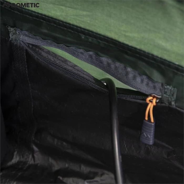 - REAR STORAGE AREAÂ –Â As family campers know, keeping the living space of the tent tidy is essential when staying put for any length of time. The Dometic storage area provides the solution to camping clutter and keeps your living space free for relaxing with friends and family. Unique to Dometic camping tents, the rear storage area is located behind the inner tents of each model and is ideal for storing luggage, clothes and other bulky items. Access to this area is through the zipped door in the back of the inner whilst the structure of the space is maintained with aluminium struts and Quick Pitch straps.