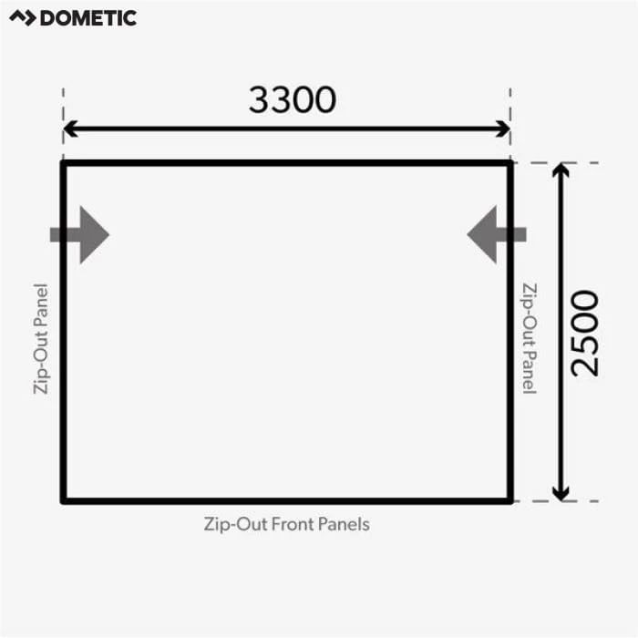 - Convenient zip-out front and side panels – to reduce weight and to open the awning up.