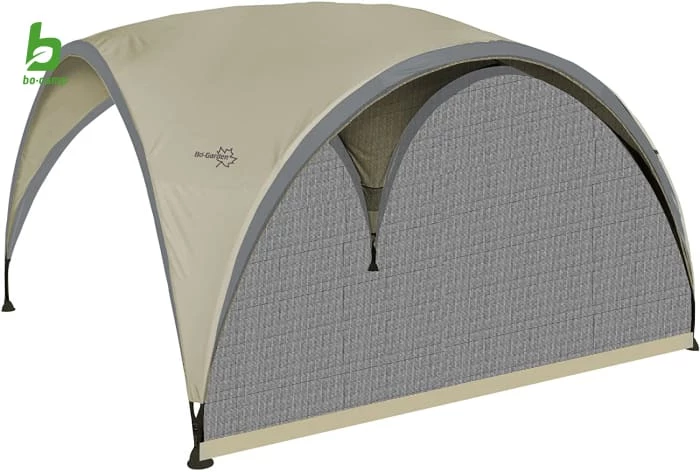 A loose and convenient insect netted side wall, to attach to your Bo Camp party shelter gazebo. This side wall is easy to fix on with velcro each side of the party shelter, quick and simple application that leaves you with a handy mosquito protected wall in the summer. The breathable mesh is ideal for some extra protection from bugs during warmer days in the garden, or at the camp site. With various attachable doors and walls, you are able to fully personalise your Bo Camp party shelter for all occassions in all weathers.Â