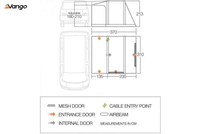 - Inflatable AirBeam® Structure – With 10 years’ experience in AirBeam® technology, we are the leaders in pole free pitching. AirBeam® technology ensures your awning is erect within a matter of minutes (supplied with double action pump)