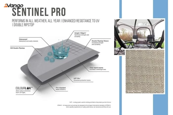 - Sentinel Pro Fabric- Designed for dedicated motorhomers who embark on several trips a year. Featuring 420 double ripstop threads, our Sentinel Pro fabric has superior strength and long-lasting durability. The added PU technical coatings and ColourLokâ„¢ technology to enhance resistance to UV fading make this fabric exceptional in performance