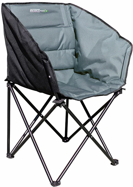 The Tub Chair is a compact folding camp chair with comfortable padded surround sides and supportive backrest. The padded fabric and sturdy steel frame provide exceptional comfort and support whilst the oversize wide base feet help to prevent the chair from sinking into soft ground and damaging ground sheets. Available in a choice of 3 complimenting colour variations.