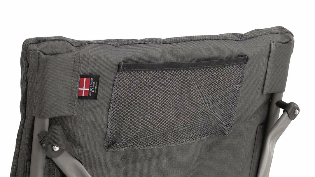 The versatile Outwell Yellowstone Lake folding chair combines a well-padded seat and back with smart powder coated steel tube frame. It offers you dining table seat height and, with its four adjustable back positions, can also be used for relaxing with the Outwell Trinity Lake Footrest. A mesh pocket at the back is perfect for stashing your personal items