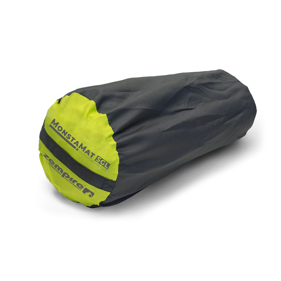 Our most comfortable sleeping mat to date! The Monstamat Single is a self-inflating camping mattress with a luxurious stretch fabric that improves comfort and minimizes noise. A heavy-duty 75D TPU base provides durability and cross-cored foam allows the mat to self-inflate quickly. The 360° one-way valve can be set to three positions for easy inflation and deflation of your mat.