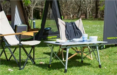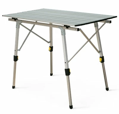 A folding camp table with a natural bamboo tabletop. The Kitpac Standard V2 folds in 4 & fits neatly into a durable carry bag. The square-profile aluminium frame is sturdy, lightweight & rust-resistant. Adjustable legs allow the table to be used at coffee table height & include micro-adjust feet for levelling on uneven surfaces. If that is not enough it also features a built-in bottle opener!