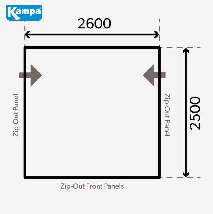 Limpet Ready – This product is compatible with Kampa’s optional Limpet Fix System which lets you attach the rear wall of your Kampa awning to the smooth outer wall of your caravan/ motorhome.