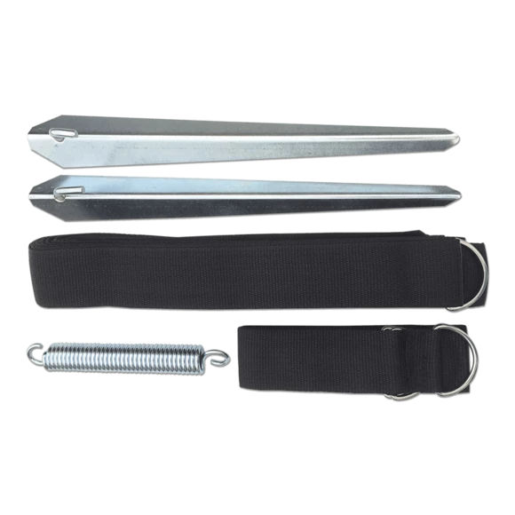 Scope of delivery 1 12m strap; 1 1.5m strap; 2 38cm pegs; 1 15cm tension springÂ