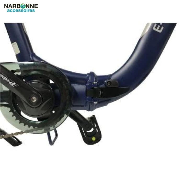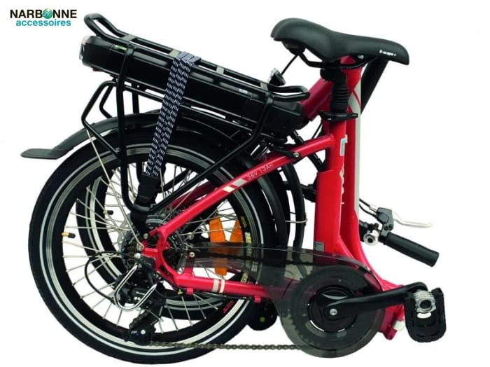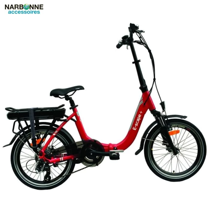 The E-Scape + folding electric bike offers a real taste of freedom! Versatile and suitable for all terrain, you’ll enjoy maximum comfort with the low frame (cyclists from 1.50-1.85m), front suspension and adjustable handlebar. Also features ergonomic handles, a wide, comfortable saddle and a suspended saddle tube. The chain-guard will keep your clothes free of dirt and grease. The LCD controller/display lets you activate the LED lights, select the assistance level required and see a range of other information. The “Park” function switches the bike off automatically after 10 minutes’ inactivity, so it won’t drain the battery. The high-power, ultra-safe brakes will prevent the wheels from locking on slippery surfaces The high-end motor offers progressive assistance which adapts to the cyclist, and runs very quietly indeed