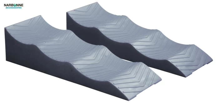 Easy and quick to upgrade. More comfort. Optimized operation of on-board devices. Easy to clean. To move, cook, sleep well horizontally whatever the parking lot. These three-level chocks, specific for motorhomes, limit stabilization maneuvers thanks to their design on a slight slope. Compatible with the non-slip option.