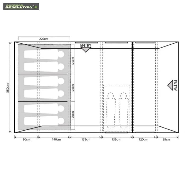 - Sleeping accommodation can be expanded to 8 persons using an optional 2 berth clip-in inner tent.