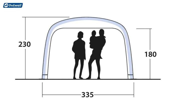 The Outwell Air Shelter features our One Air System frame. Erected from a single inflation point, it’s fast and easy to pitch with ample headroom plus superb stability via guylines and tube bracing straps.