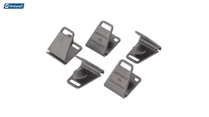 Outwell Hook Track Hooks have been designed for use with compatible Outwell tents, from 2020 and onwards. These hooks provide additional hanging and storage points from the roof throughout your tent. Brilliant for hanging lamps, running cables, hanging torches, fairy lights, mirrors, storage organizers, towels, tea towels, and so much more! The possibilities are endless. Use these handy hooks for wherever your imagination takes you. Clever storage that takes up no room!Â