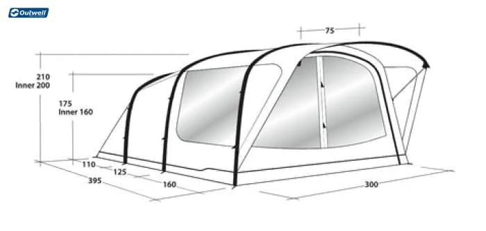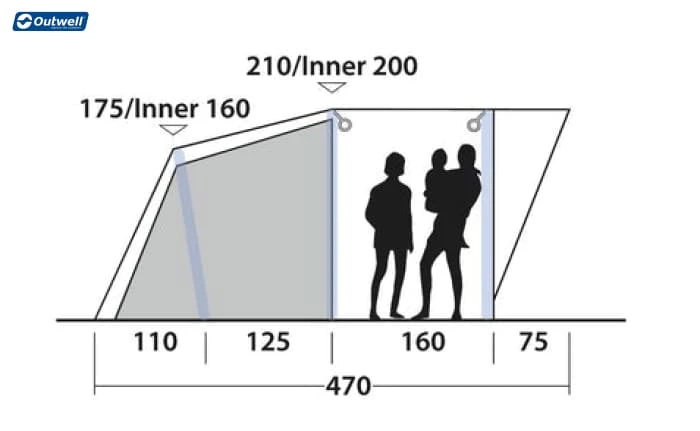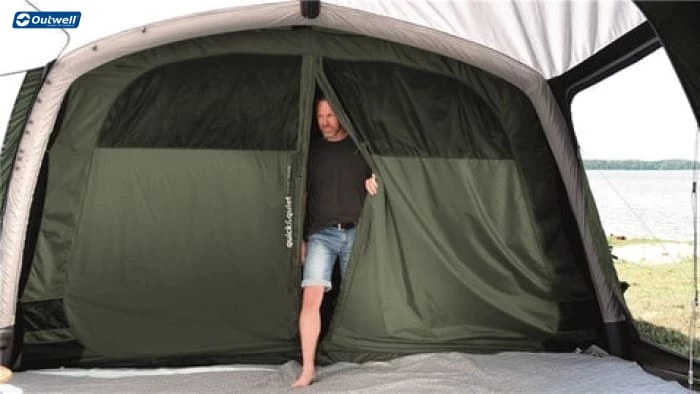The Outwell Lindale 5PA tent has 2 distinct zones, the living area and the sleeping area that can sleep up to 5 people over two dark premier bedrooms. The bedrooms also feature Outwell’s Quick & Quiet magnetic doors on one side which reduces the sound of zips. The Lindale features pre-angled air tubes to maximise headroom throughout the tent whilst adding to the rigidity during windy weather.