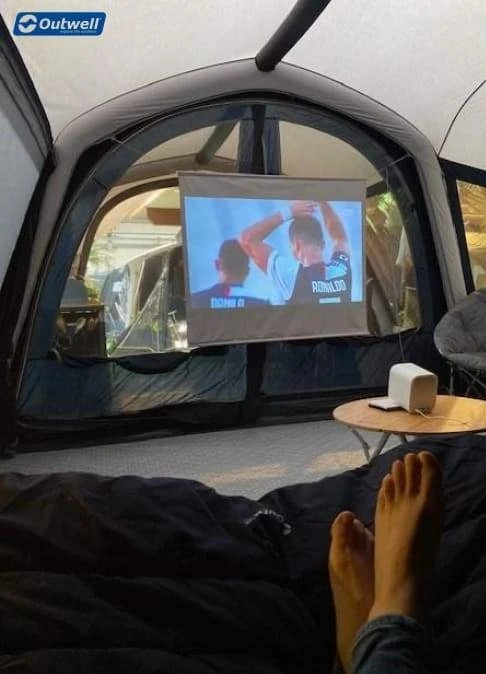 Home from home luxury has just got even better with the new Outwell tent movie screen and with so many cheap projectors now available it’s time to connect your tech and stream live games or enjoy big screen movie nights from the comfort of your tent, the perfect way to turn a wing lounge into a home cinema.