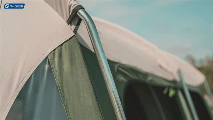 The Outwell Yosemite Lake is a brand-new tent for the 2022 season and it very much sits in a league of its own. It is not often we see a modern Polycotton tent with Steel Poles and certainly not one with so many features. The Yosemite is Outwell’s top-end poled tent and has every feature that Outwell have to offer. The Yosemite Lake comes in three different sizes, starting at a compact 4 berth which is perfect for small families or couples. The larger 5 & 6 models are better suited to families who wish to have a bit more living space while camping, but like the design and features the tent has to offer. The TC fabric is breathable and perfect for using in the UK and in Europe, as it allows the air to flow through the fabric for a more comfortable environment on a hot day. A steel frame is robust and reliable, with each pole being colour co-ordinated to make it easy to pitch. The poles themselves are pre-shaped to give better interior height and to stop them twisting.