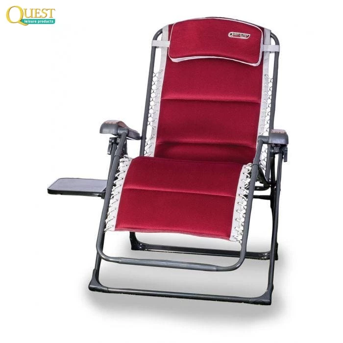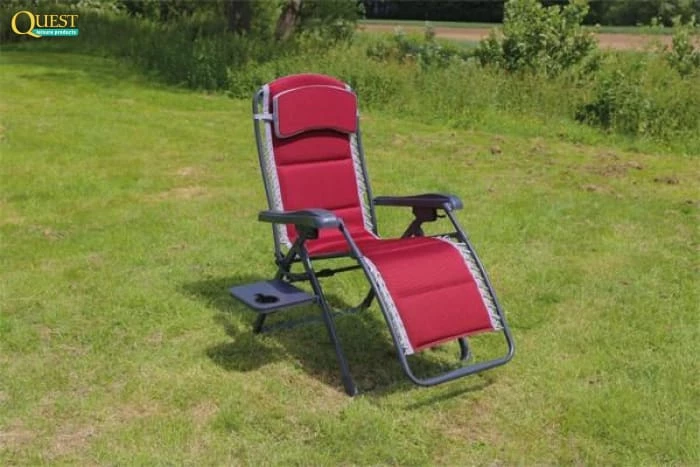 The chair also features an exclusive slide out side table. This gives you a side table right on your chair at the perfect height for drinks, food and more. If you don’t need the table you can simply slide it out of the way and slide it back when you need it, you never need be without a table It has a premium lightweight aluminium frame with a premium powder coating which gives you an all weather frame.
