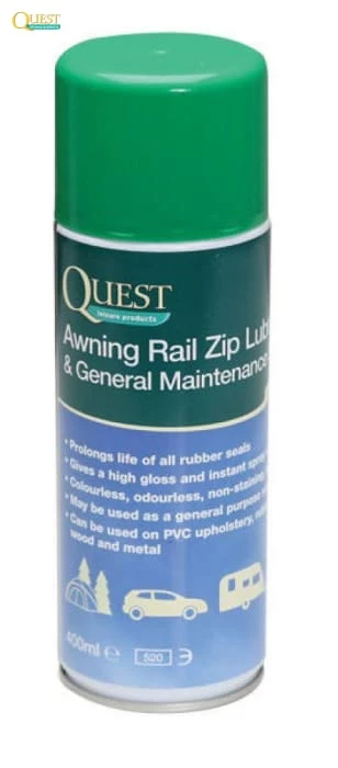 Quest’s Awning Rail Zip spray Lubricant prolongs the life of all rubber seals, and general maintenance.