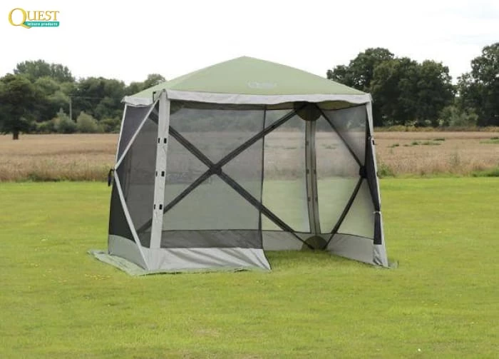 This is the Quest Elite Instant Spring Up Screen House 4; a quick erect, pop up shelter. Perfect for entertaining in the garden, for a sheltered playing area, for use at outdoor events or as a covered social area when camping. The handy screen house features the unique spring up frame system which allows just 1 person to erect this screen house in under a minute! No frame to erect, nothing to put together or adjust, it goes up in three simple steps!