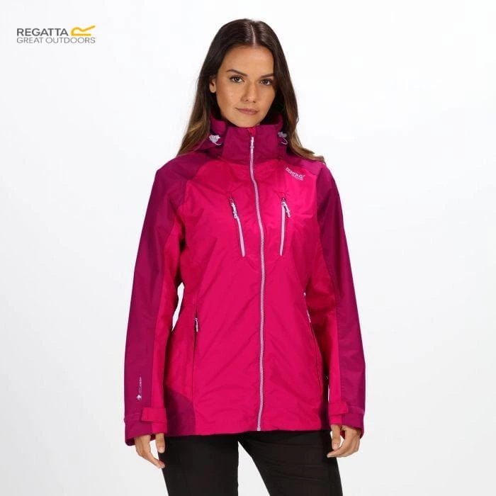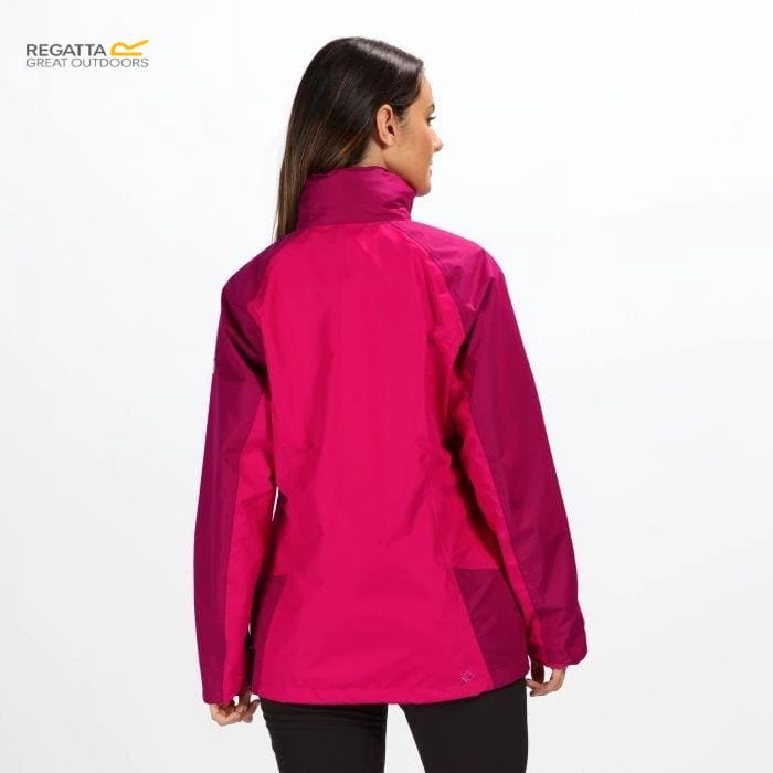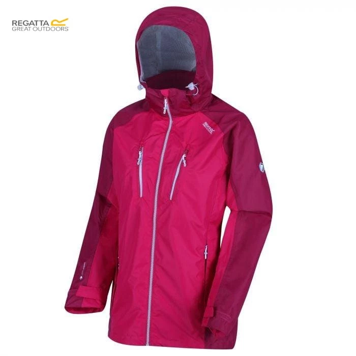 The dark cerise coloured women’s Calderdale Jacket – a great all-rounder for weekend adventures or the mid-week commute. Waterproof/breathable polyester with sealed seams and a DWR (Durable Water Repellent) finish delivers reliable wet weather protection. Comfort features include: a lightweight, soft-touch lining, an adjustable hood that rolls down and packs away with a neat design, adjustable hook and loop cuffs and an easy adjust shockcord hem. With multiple pockets, including one for your map and the Regatta print on the chest.