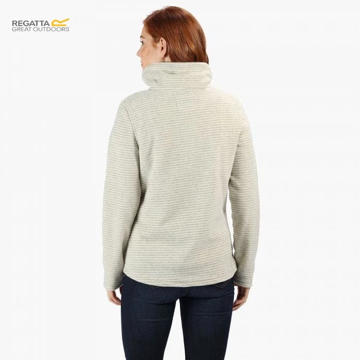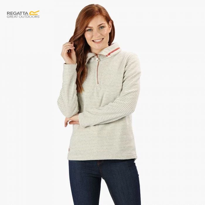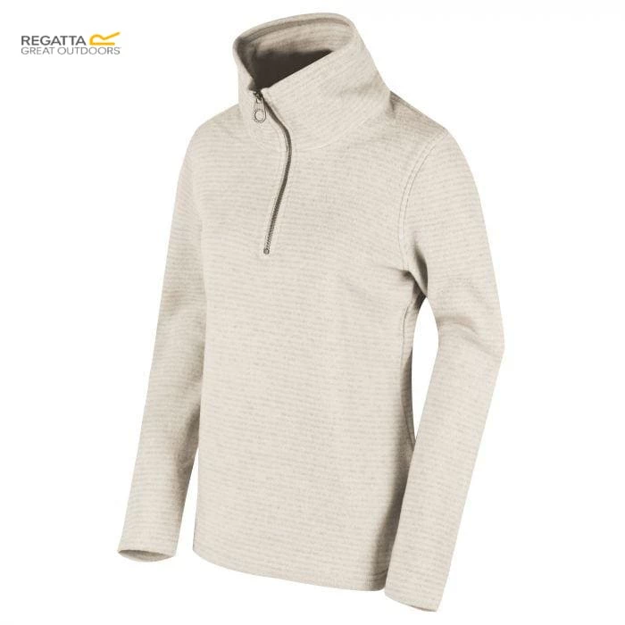 Light vanilla half zip, overhead fleece. A gorgeously soft and warming pullover for year-round layering, crafted from midweight SYMMETRY fleece (240gsm) with a subtle stripe pattern. The snug funnel collar opens with a chunky ‘rose gold’ zip.