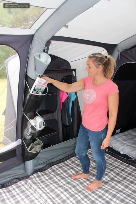 A great solution to tent storage! Create a handy location to store things around the tent, to keep the living space tidy and organised. A simple design, simply attach onto the Air columns, and voila! Three large pockets of storage.