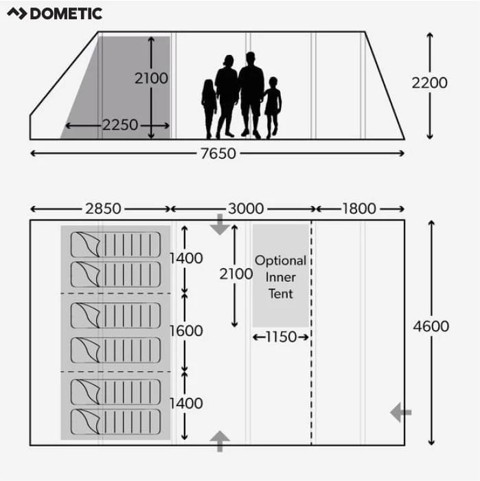 - REAR STORAGE AREAÂ –Â As family campers know, keeping the living space of the tent tidy is essential when staying put for any length of time. The Dometic storage area provides the solution to camping clutter and keeps your living space free for relaxing with friends and family. Unique to Dometic camping tents, the rear storage area is located behind the inner tents of each model and is ideal for storing luggage, clothes and other bulky items. Access to this area is through the zipped door in the back of the inner whilst the structure of the space is maintained with aluminium struts and Quick Pitch straps.