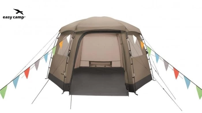 Sleeping up to six glampers, with pre-angled FRP poles ensuring full headroom throughout, the Easy Camp Moonlight Yurt offers the size and freedom for families and friends to create unique spaces, connecting them with nature and sharing fun outdoors. PVC windows deliver internal light, with toggle-up curtains for privacy, whilst easy access is guaranteed through the wide, fold flat entrance with double slider zippers on the door for flexible opening. Large mesh panels under the flysheet cap, a mesh window in the door, with a toggle-up curtain, and covered rear vent ensure ample ventilation and easily adjustable fresh airflow.
