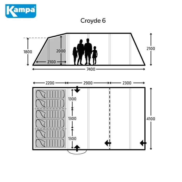 The Croyde 6 Poled Tent is easy to handle, the ultra-lightweight Weathershieldâ„¢ 68D material offers exceptional value, is highly weather resistant and provides advanced protection against UV degradation. The spacious Croyde 6 features ventilated access to the front and left side, as well as a large 3 position front canopy door, perfect for enjoying the summer sun.Â