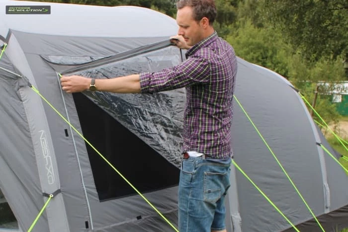 - Zip up right side external PVC window with full mesh ventilation panel.