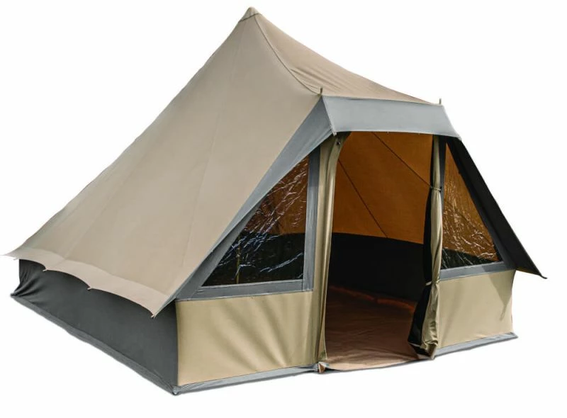 The Quest Gobi has to be one of the smallest premium-quality cotton canvas tents on the market. While retaining a small floorplan, elevated sides help to give more usable space for camping. Often these tents are used on permanent glamping sites as they are built to last, an extra thick PVC groundsheet makes this a fantastic family-friendly tent, or perfect for a couple who want that bit more space. Sleeping up to 4 adults in this square variant, this simple steel-framed tent can be put up by one person, making this one of the easiest tents to erect. Â