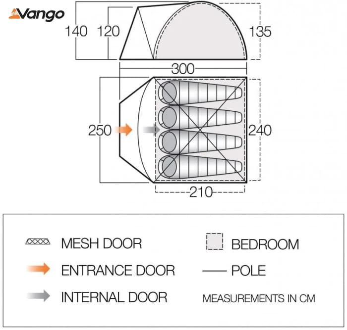 - Protex® 70 Denier Polyester Flysheet, 3000mm HH – Highly waterproof, durable and reliable fabric, exclusive to Vango