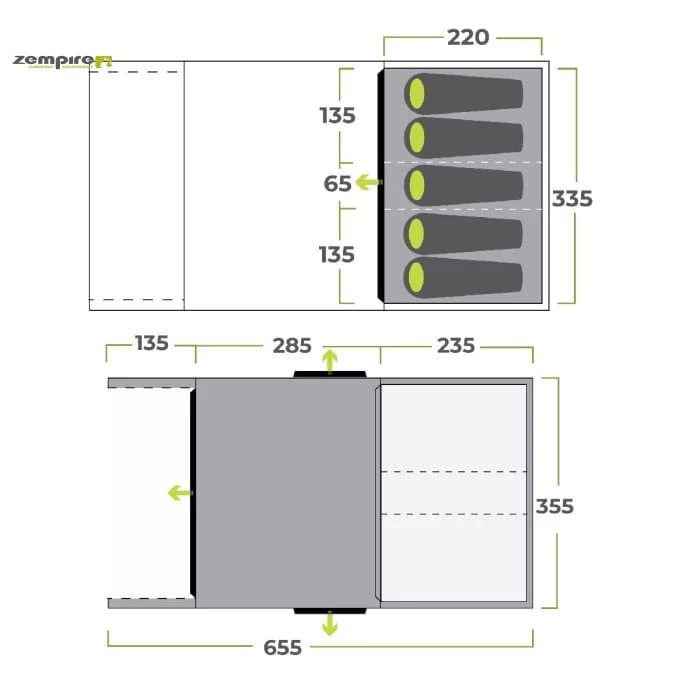 The Zempire Evo Range has been one of Zempire’s most popular collections. For the new 2022 season, Zempire have upgraded their bedrooms to their ‘All Black Bedroom’ which not only cuts down early morning light but also has their new Multi-room inner. The Multi-room inner gives you several options for adjusting the bedroom sizes by using zip-out dividers (TXLÂ & TL). Another update worth mentioning is the new Tinted Skylight which provides additional natural light in the tent and awning, but can be closed with zip curtains when needed.