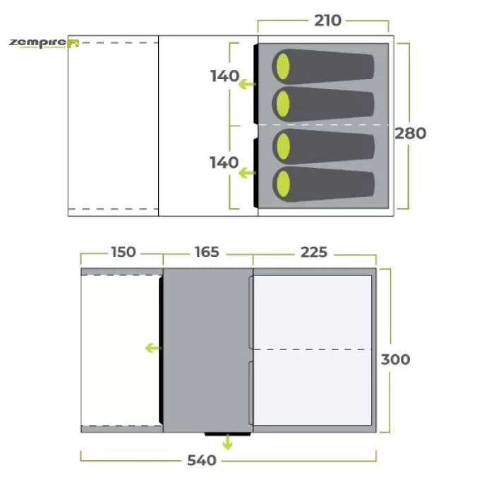 The Zempire Evo Range has been one of Zempire’s most popular collections. For the new 2022 season, Zempire has upgraded their bedrooms to their ‘All Black Bedroom’ which not only cuts down early morning light but also has their new Multi-room inner. The Multi-room inner gives you several options for adjusting the bedroom sizes by using zip-out dividers (TXLÂ & TL). Another update worth mentioning is the new Tinted Skylight which provides additional natural light in the tent and awning, but can be closed with zip curtains when needed.