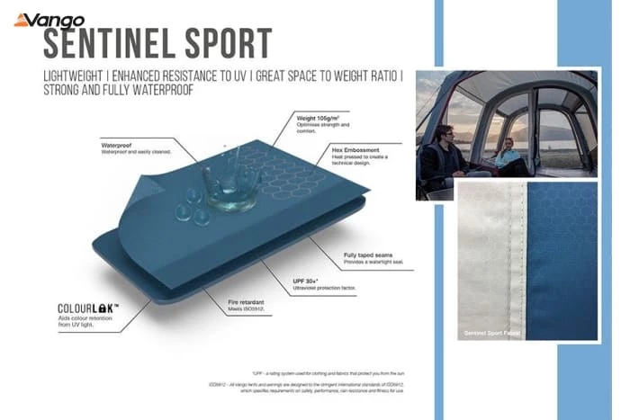 - Sentinel Sport Fabric – A lightweight yet strong and waterproof fabric exclusive to the Vango Sport awning collection. Sentinel Sport features a great space to weight ratio while featuring a stylish hex embossed design. ColourLokâ„¢ technology aids colour retention from UV light